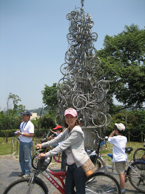 抵達了綠廊走廊外緣的自行車行,一人挑一台腳踏車就上路了