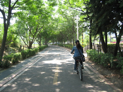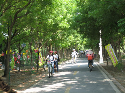 名符其實的綠廊,在樹蘟底下自在地騎乘自行車、還有涼風徐吹、少了喧鬧的