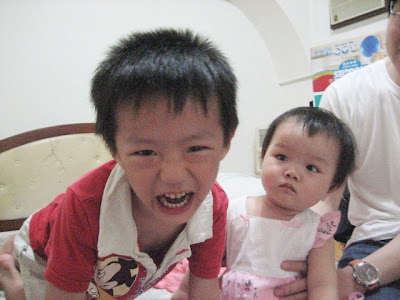 沒一會兒,淘氣的本性又露出來啦~人家妹妹的爸爸在旁邊耶!