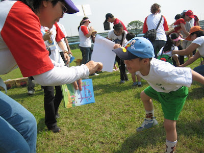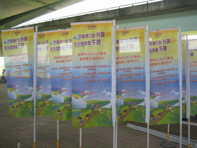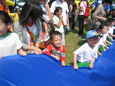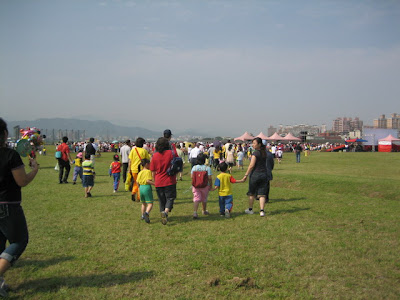 板橋市辦的公、私立幼稚園運動會在浮洲橋下的大公園,