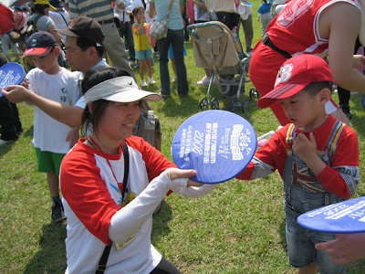 耶,大會送我們一人一個可當飛盤又可以當扇子的紀念品