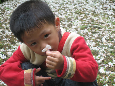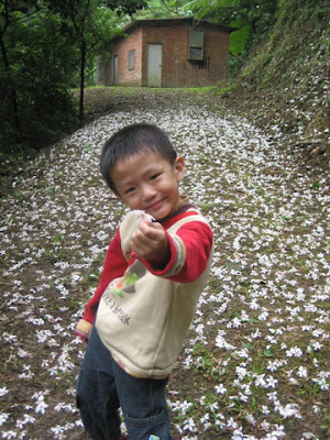 一看到路面上的油桐花,姑姑相機馬上就掏出來狂拍。