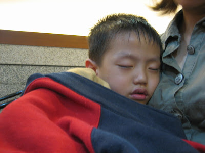 後來轉戰土城桐花公園,半途我已經快睡著了,姑姑用外套將我們倆緊緊綁著